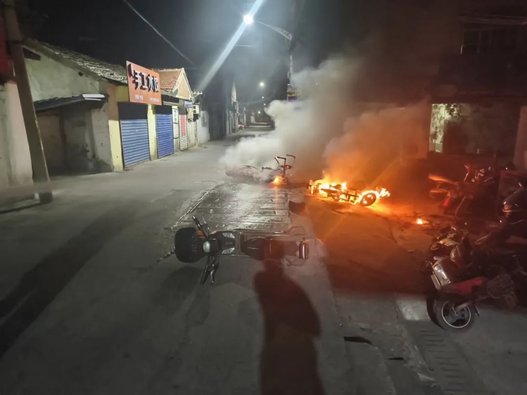 火灾现场,多辆电动自行车起火。图源:扬州消防
